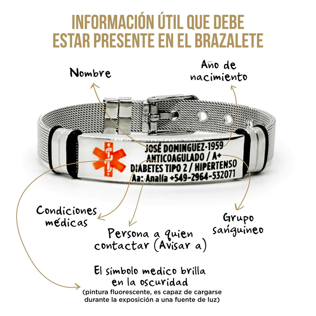 Este brazalete es fundamental para personas con afecciones médicas que requieren atención urgente, tales como: Diabetes, epilepsia, autismo, alergias, enfermedades cardíacas, marcapasos, asma, EPOC, derrame cerebral, cáncer, esclerosis múltiple, hipertensión y más. También es recomendado para niños con necesidades especiales.