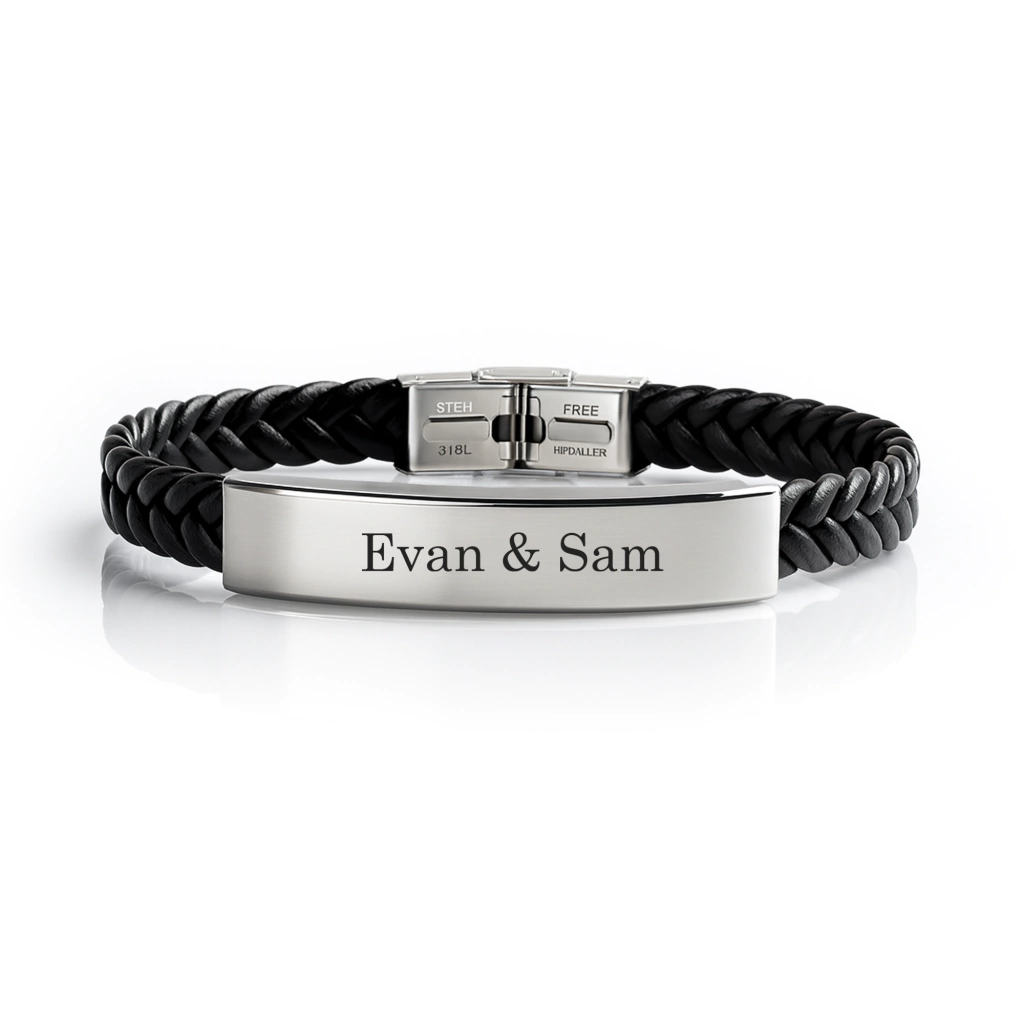 Este brazalete no solo es un complemento ideal para cualquier outfit, sino que también te permite expresar tu identidad a través de su grabado personalizado. Su diseño elegante y sobrio lo hace perfecto tanto para usar en ocasiones casuales como eventos especiales.