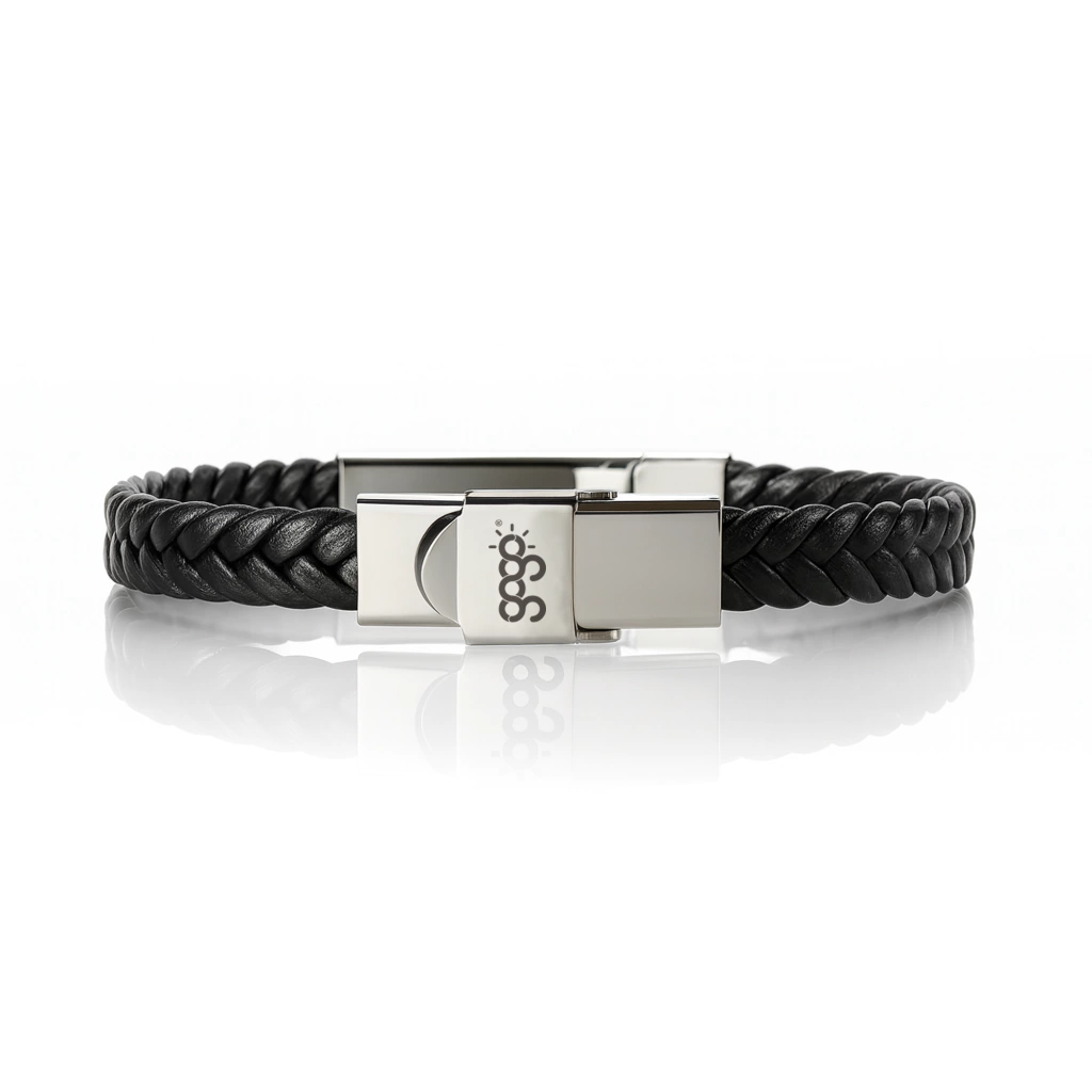 Descubrí el Brazalete REN, un accesorio único que combina la sofisticación del cuero ecológico negro trenzado con la resistencia y estilo del acero quirúrgico. Este brazalete es ideal para quienes buscan un detalle distintivo y personal en su look diario.
