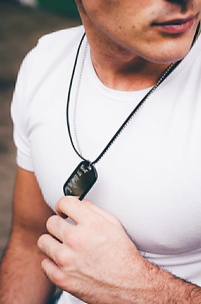 En la parte inferior se encuentra una chapa tipo militar con espacio para grabado y con una goma de caucho a su alrededor.