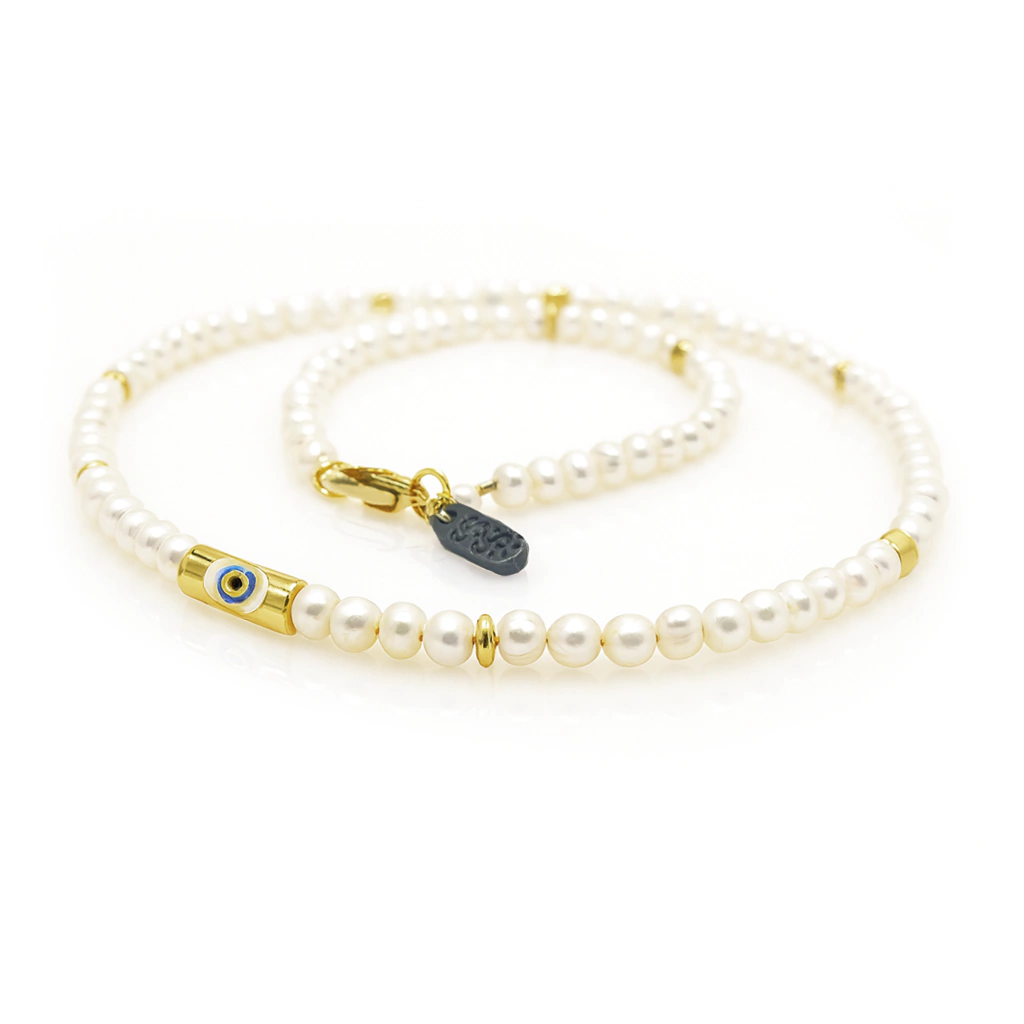 Descubrí el Collar de Perlas Corinto, una pieza única que combina elegancia y protección en un solo accesorio. Este collar de 40 cm, tipo gargantilla, está adornado con delicadas perlas de 5 mm, que aportan un brillo sutil a tu look.