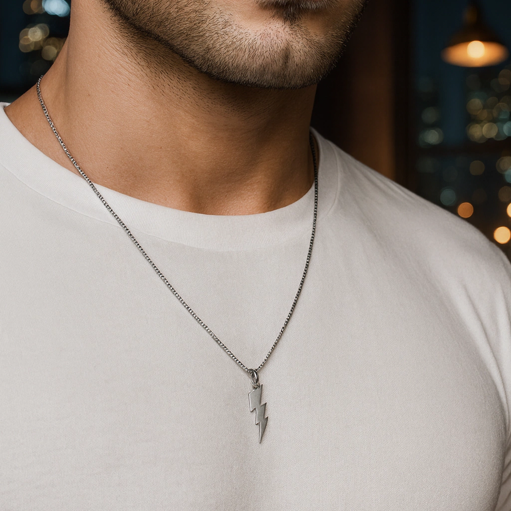Descubrí el COLLAR THOR, un accesorio diseñado para quienes buscan combinar un look moderno con durabilidad y calidad. Este collar destaca por su cadena de acero quirúrgico de 50 cm y un impactante dije en forma de rayo que aporta un toque único y audaz a cualquier outfit.