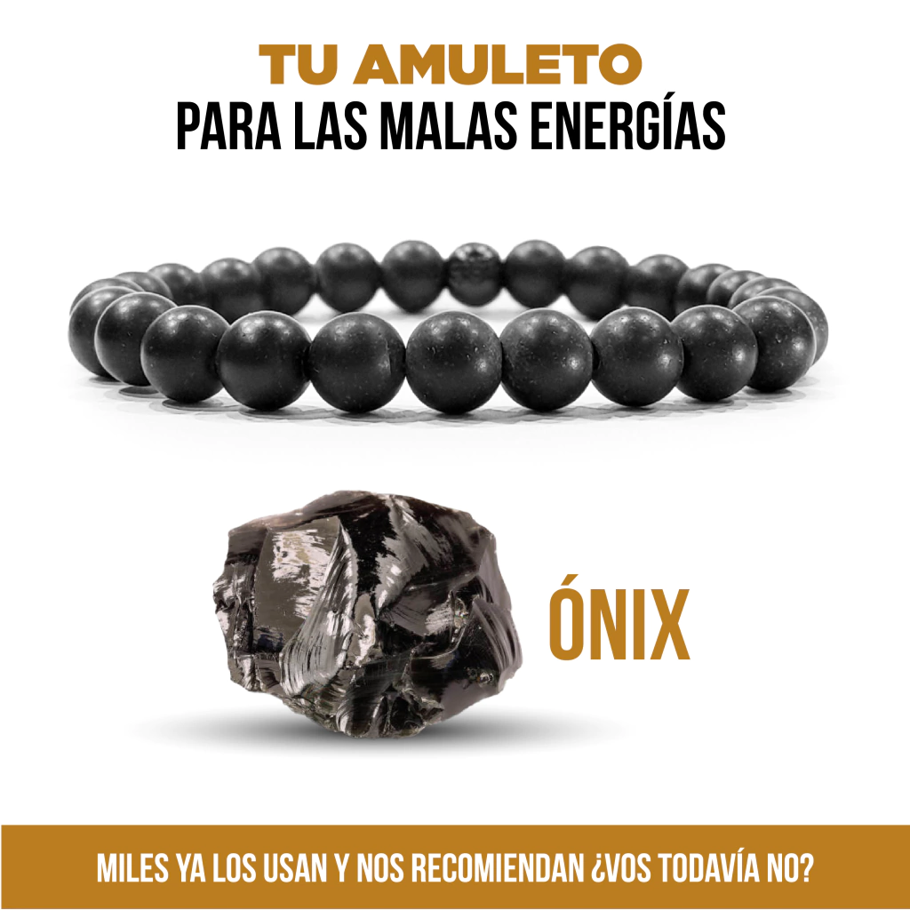 Te presentamos nuestra pulsera de piedras semipreciosas Onix de 8mm hecha con tanza elástica de 1mm de alta resistencia.